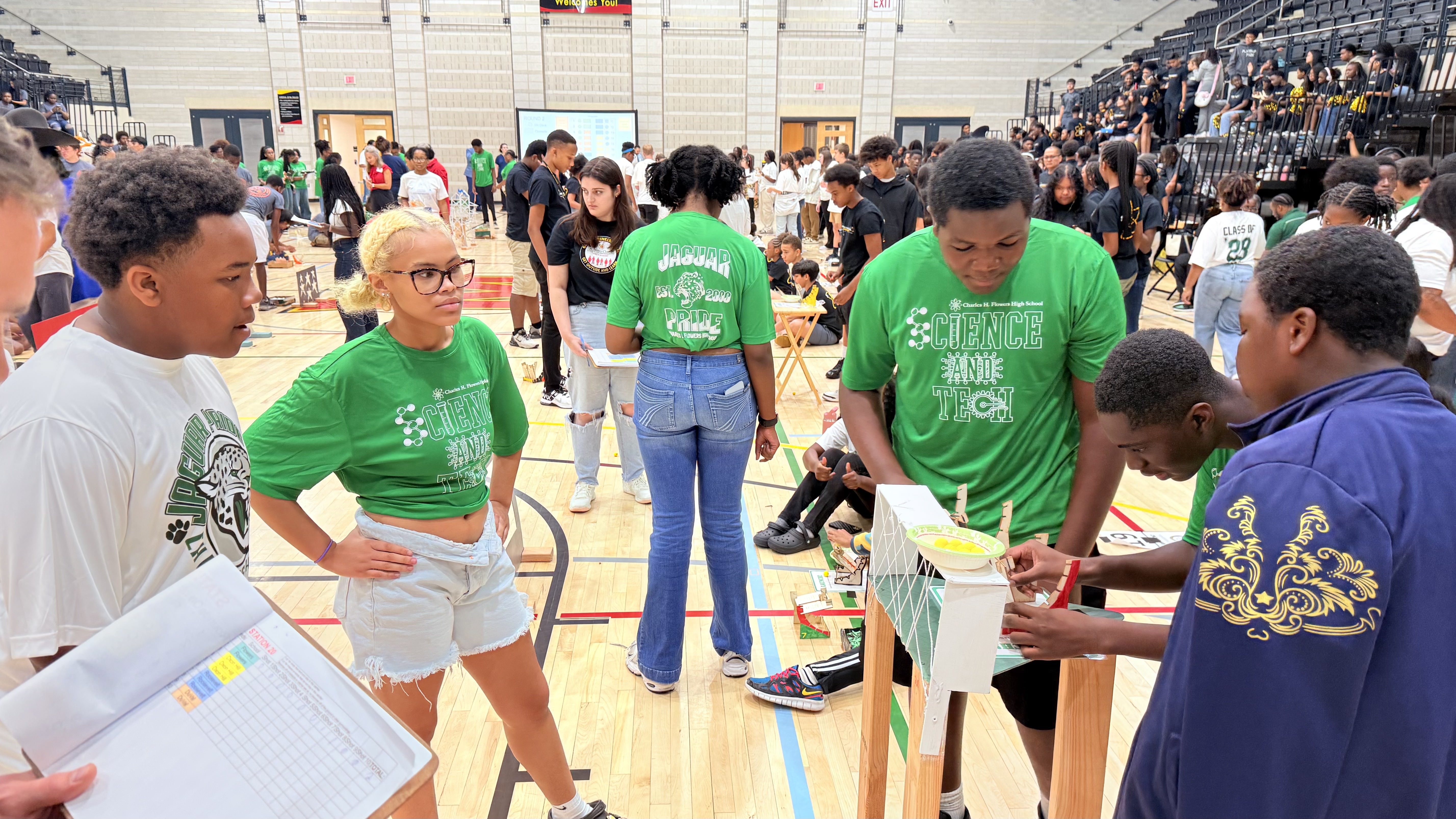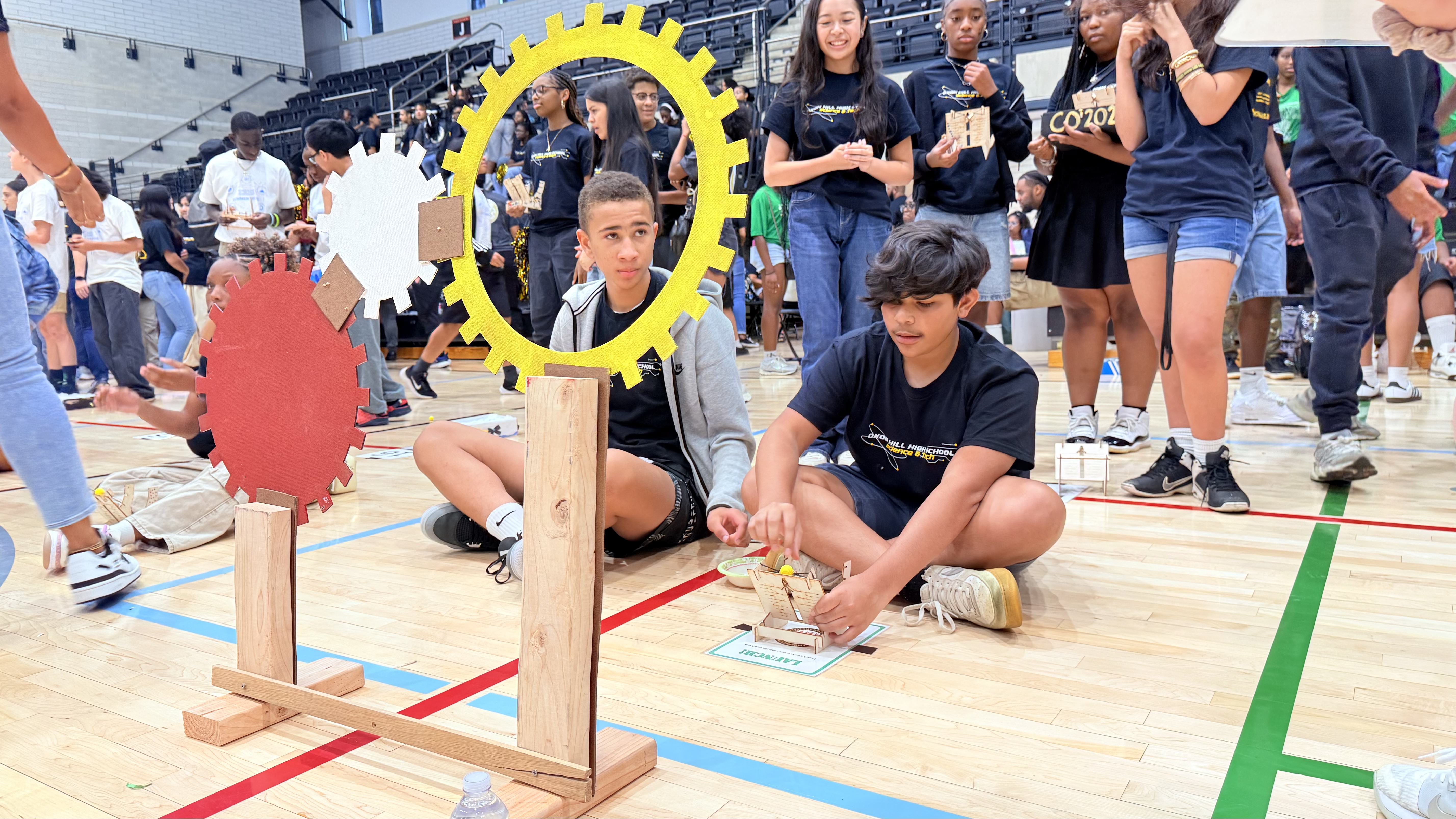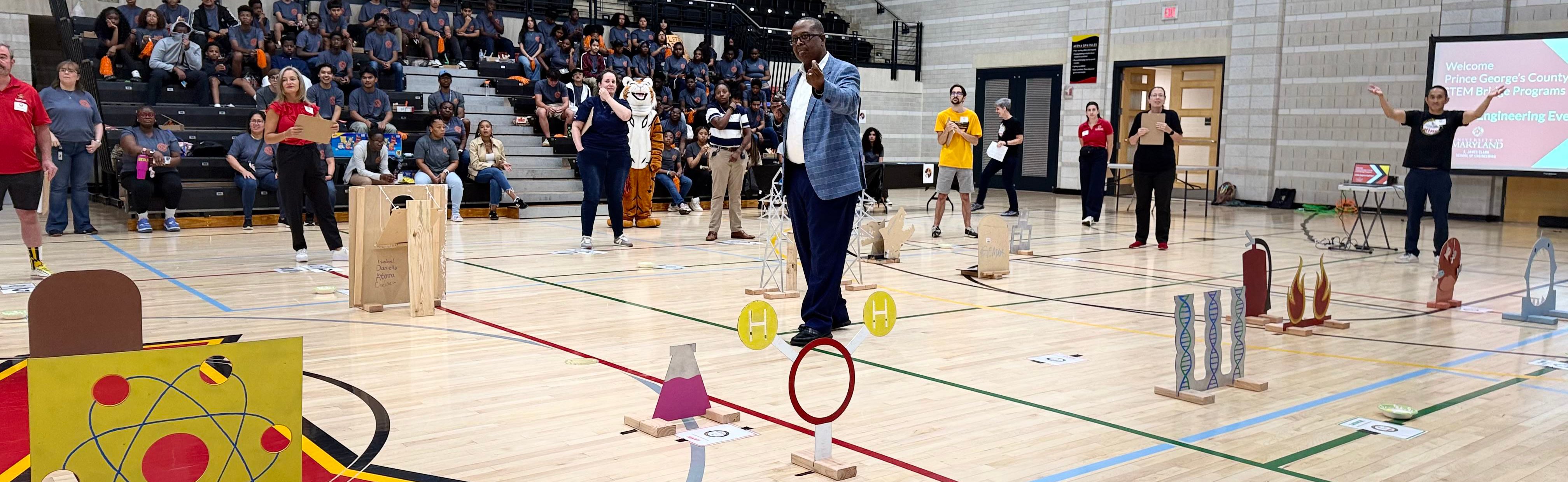 This year’s experience culminated in the Innovators of Tomorrow Competition at the University of Maryland (UMD), where students pitched prototypes and took on engineering challenges amid a backdrop of school spirit: students donned colorful gear, chanted with pride, and even brought mascots to rally their teams!